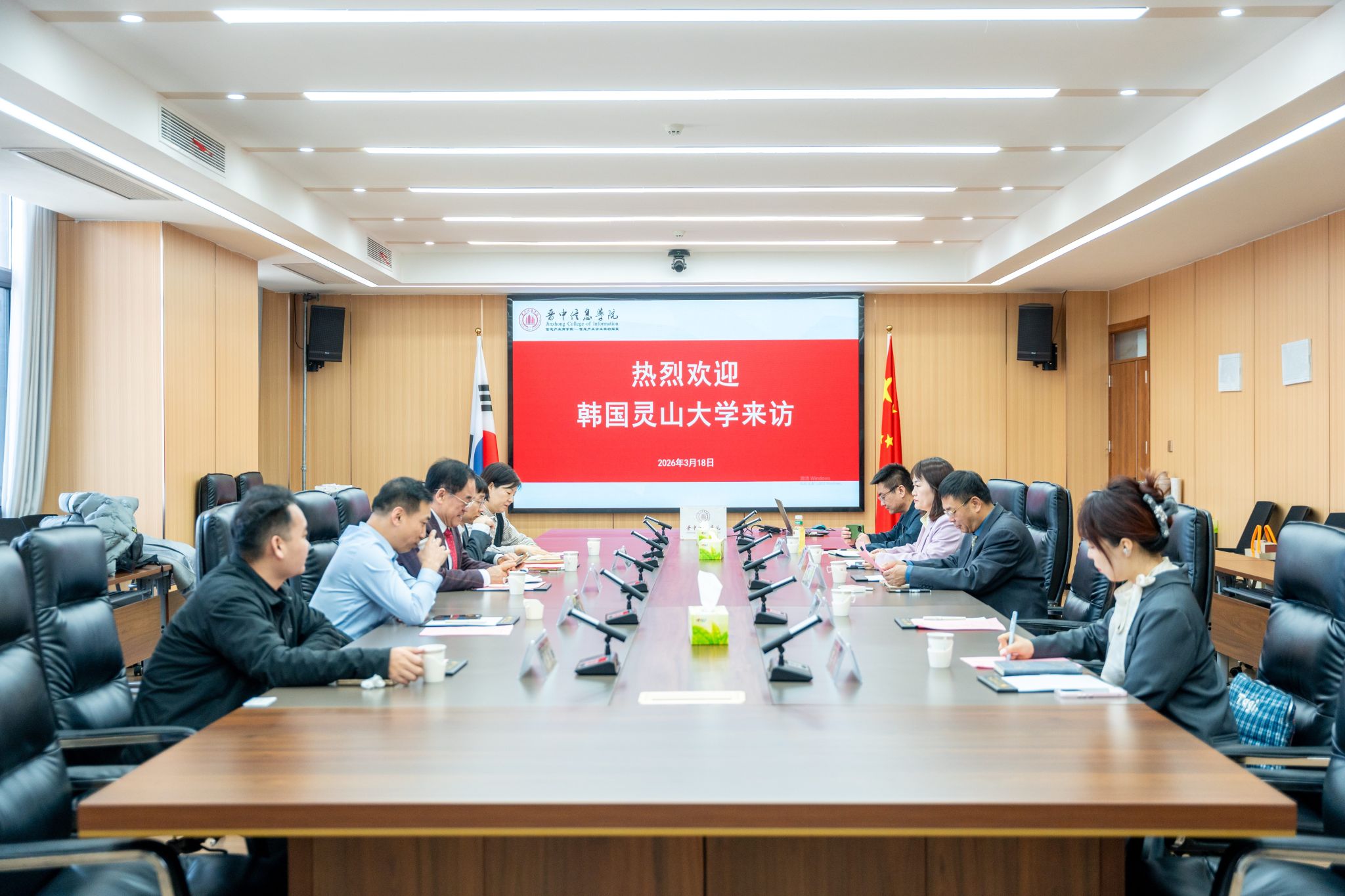 3月18日,韩国灵山大学副校长咸正午、国际招生团队负责人许宰湖等一行到访晋中信息学院,双方开展交流座谈。我校常务副校长胡继连、副校长苏琳、国际交流与合作处处长尚美丽、国际交流学院副院长刘一弘及相关人员出席会议。苏琳主持会议。