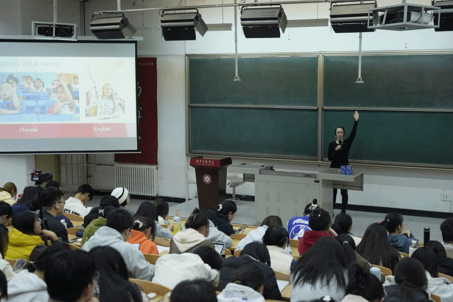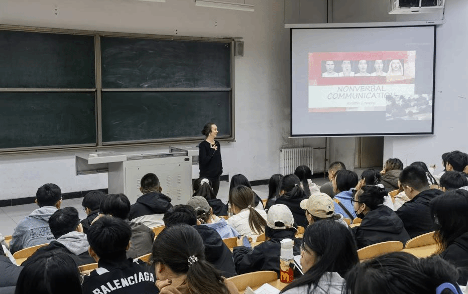 2025年10月11日下午,由我校名师课堂办公室与国际交流与合作处联合打造的“外教进名师——Culture Unbox(文化盲盒)”系列活动首期课程,在博学楼201、202、203教室同步开讲。本次课程聚焦“非语言沟通”核心主题,由我校美籍教师Kristin主讲,凭借实用的跨文化知识与趣味互动形式,吸引全校850名学生踊跃报名参与,三个教室座无虚席,现场学习氛围热烈。